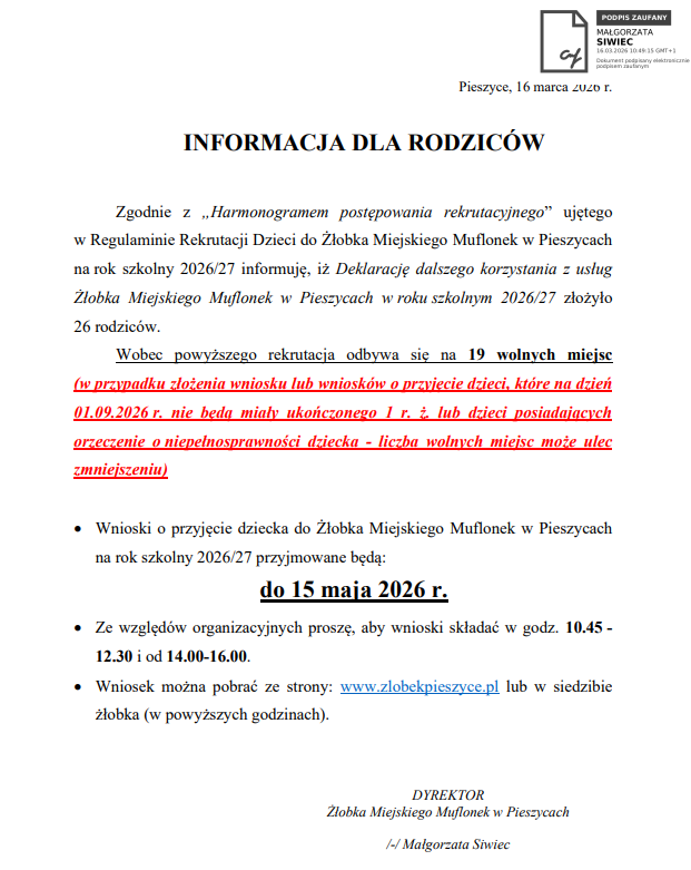 WITAMY NA STRONIE ŻŁOBKA MIEJSKIEGO W PIESZYCACH