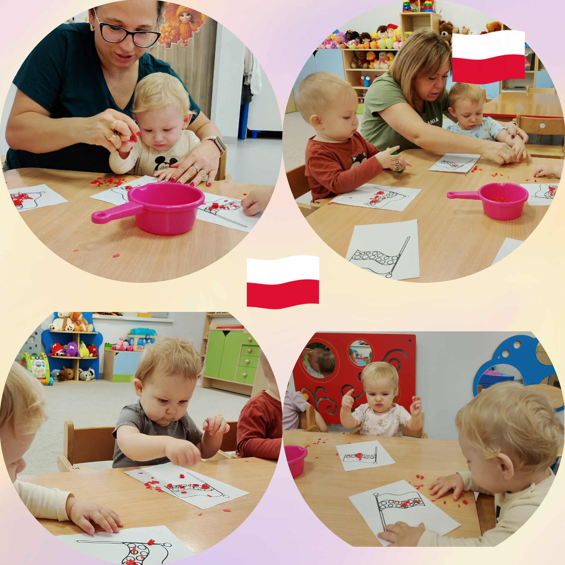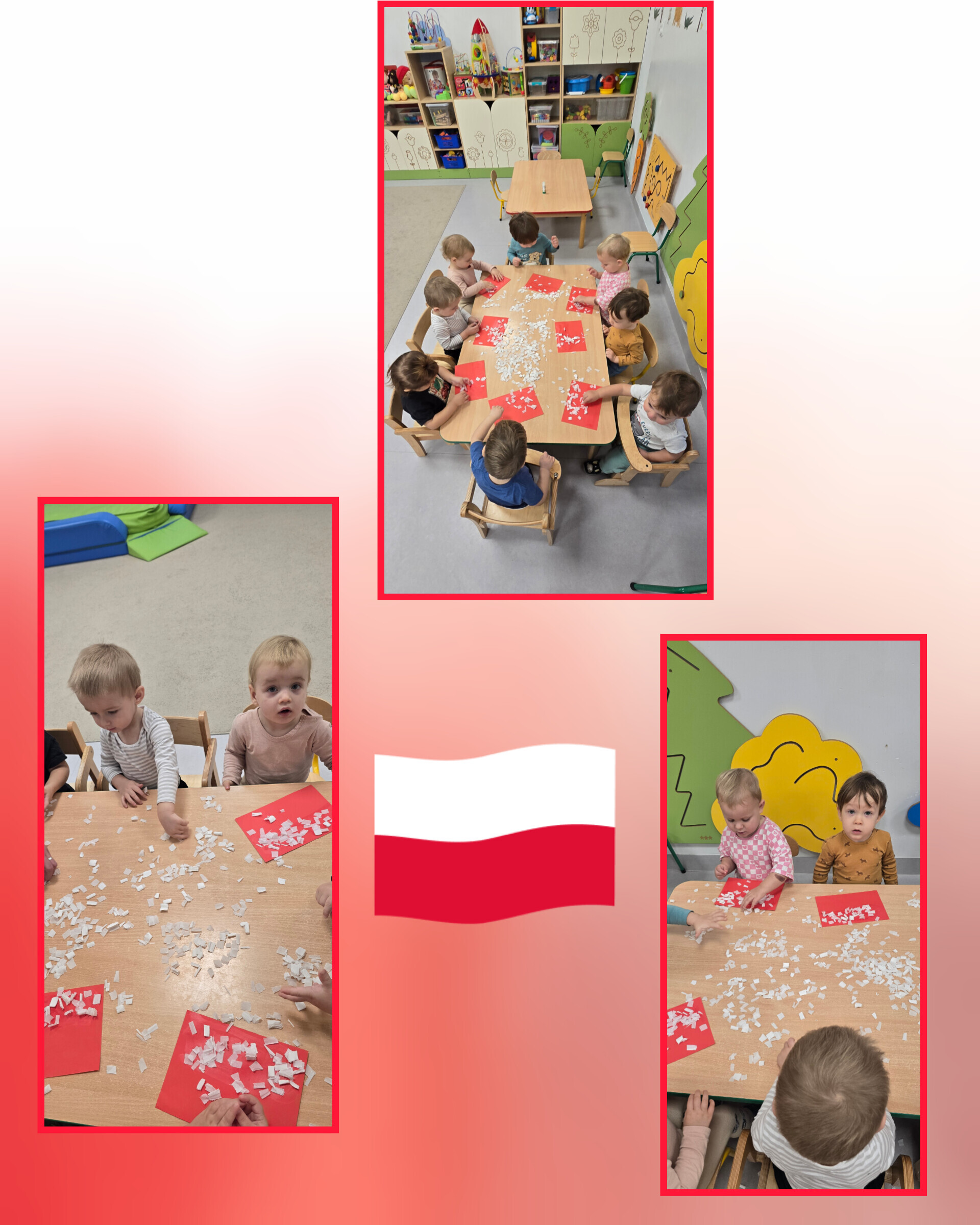 Na koniec czekała nas aktywność, którą bardzo lubimy — wyklejanie własnych, biało-czerwonych flag! W całej sali zrobiło się wesoło, kolorowo i bardzo… patriotycznie!