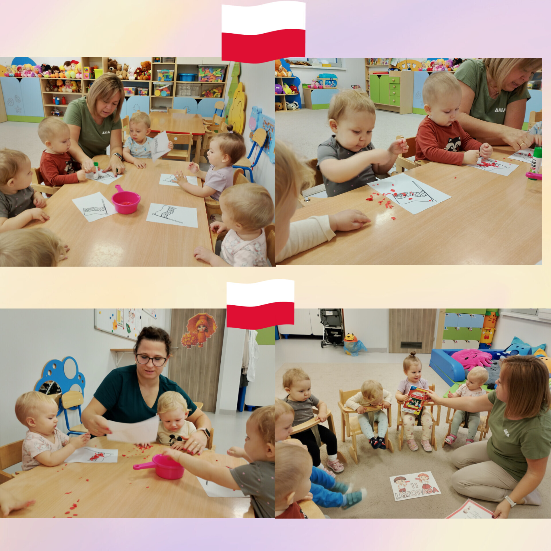 W naszym żłobku też o tym pamiętamy. 11 listopada zamienił się u nas w prawdziwe święto kolorów i radości. Panie pokazywały nam symbole narodowe, a my z zaciekawieniem oglądaliśmy flagę i godło oraz słuchaliśmy hymnu Polski.