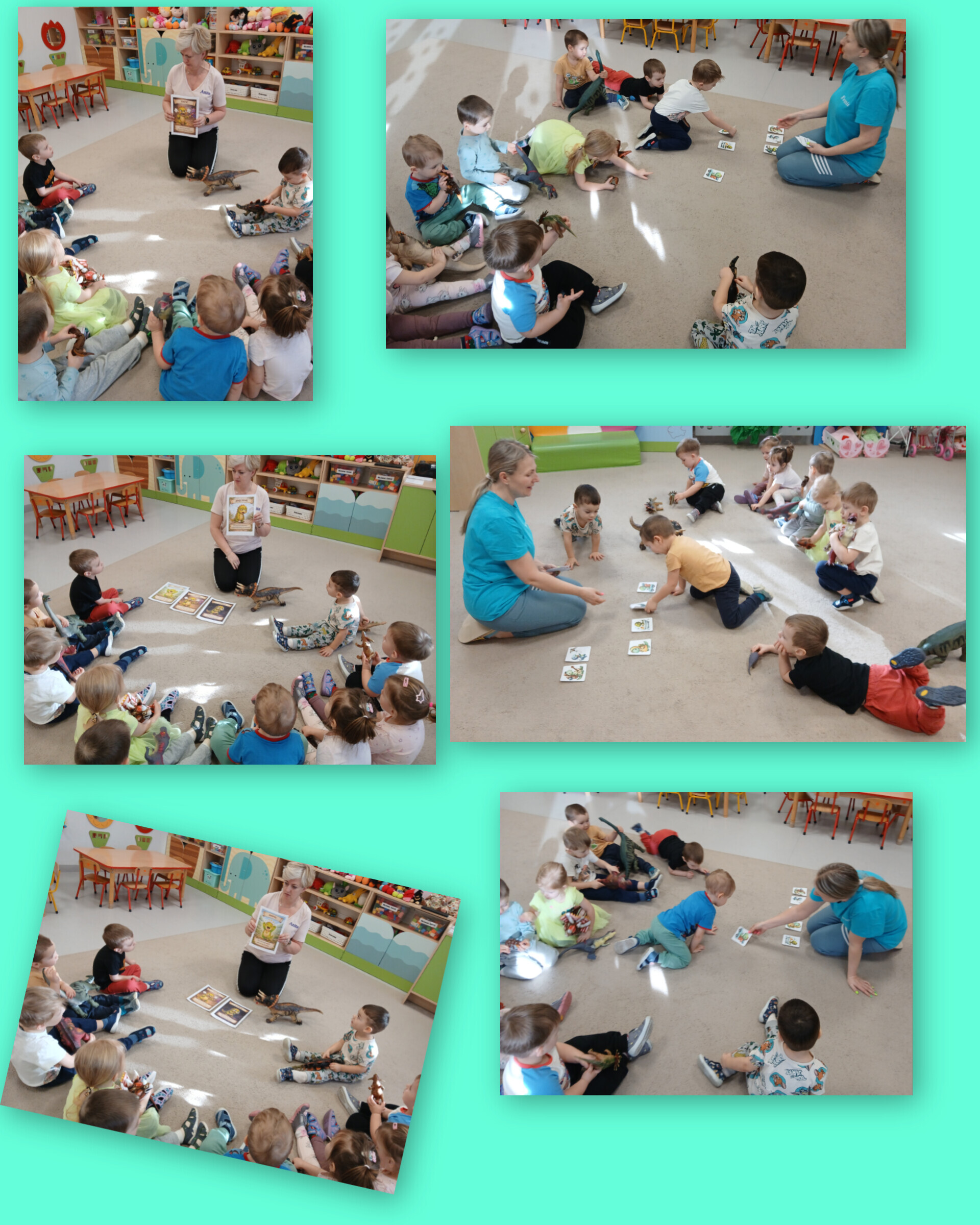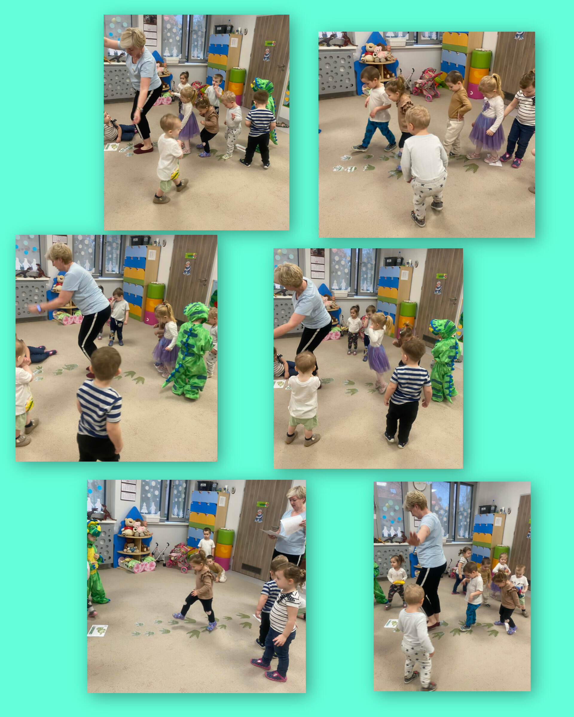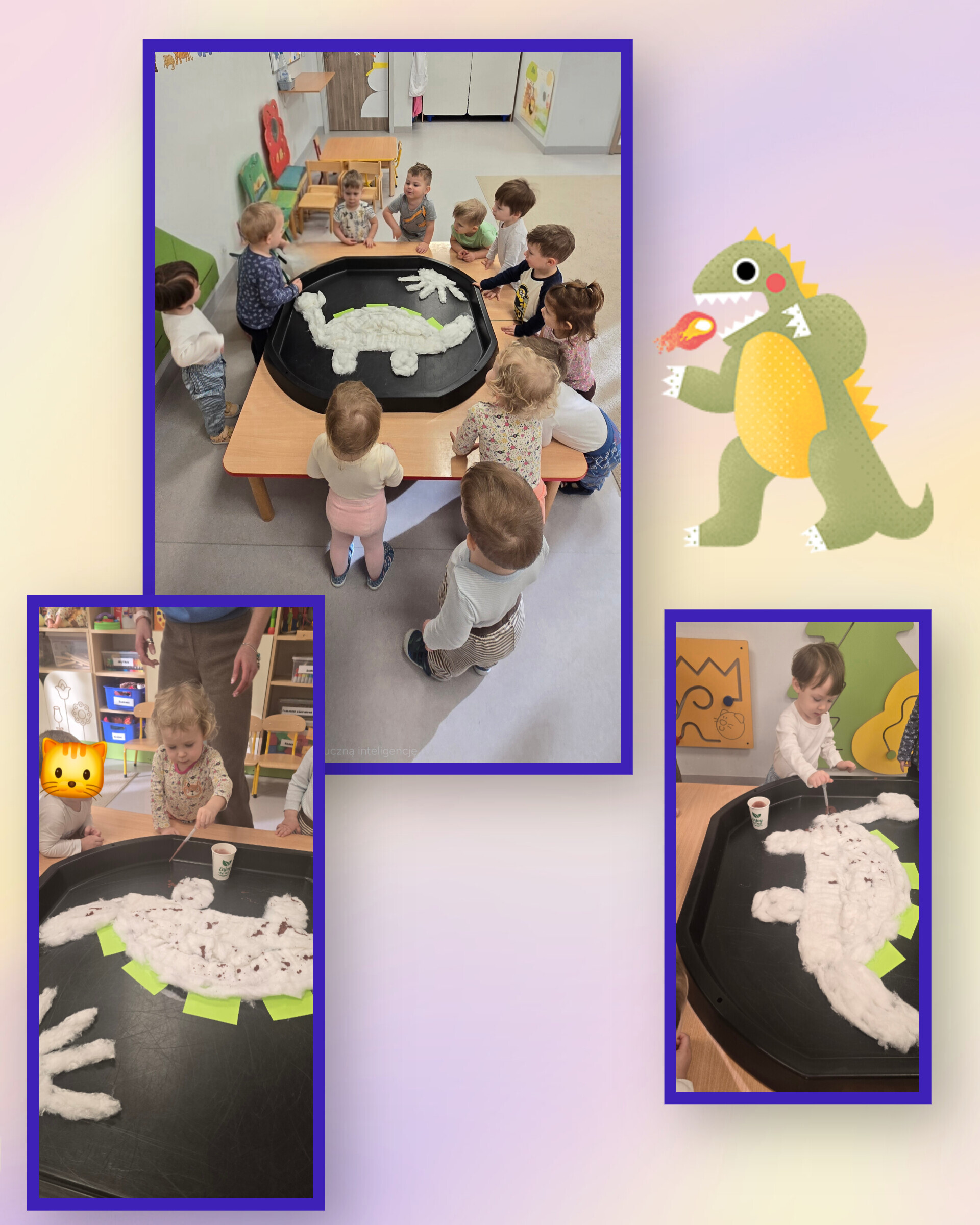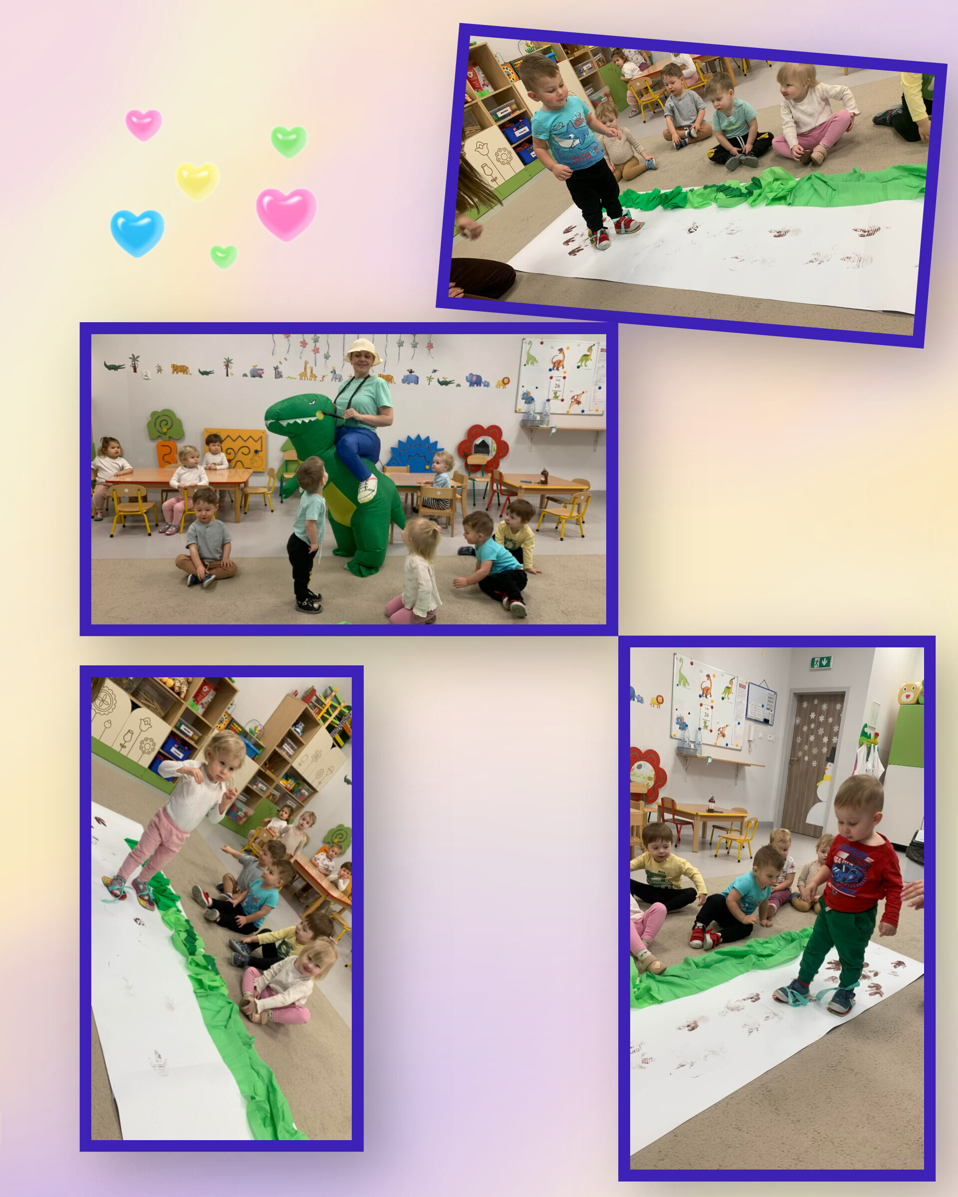 Sale zamieniły się w prehistoryczne krainy, a my przenieśliśmy się miliony lat wstecz. Poznawaliśmy dinozaury – te małe, te duże i te z baaaardzo trudnymi nazwami. Antoś, z pomocą swojego taty, przyniósł do żłobka całą ekipę dinozaurów i nazywał je z taką dumą, jakby znał je osobiście!