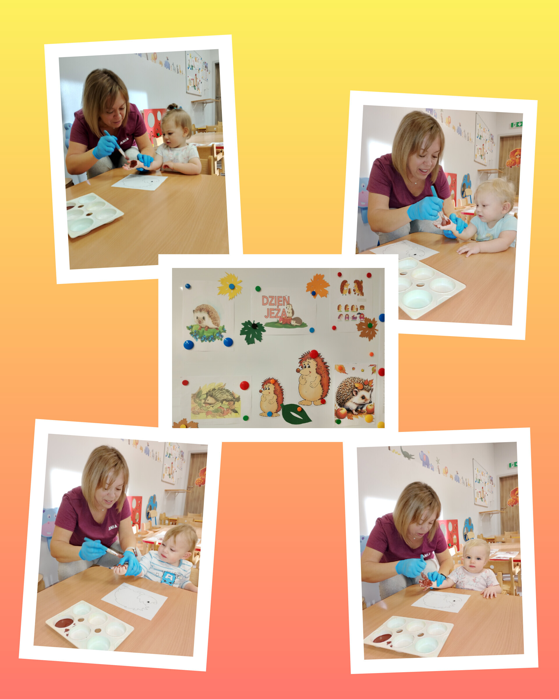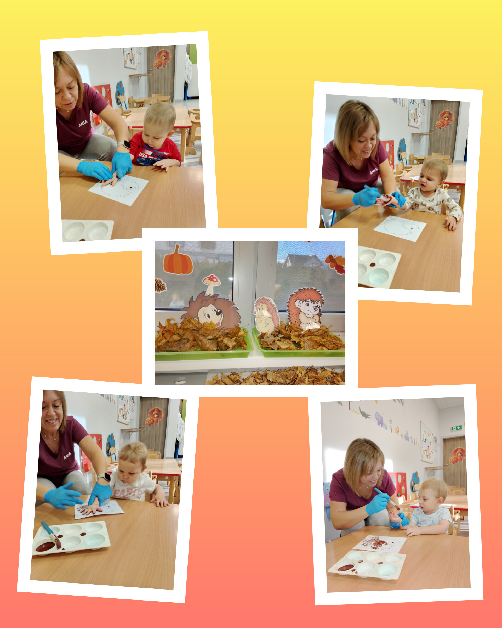 Dzieci, pracując w grupie, stworzyły mięciutko-kolczastego przyjaciela, a potem – już solo – pomalowanymi rączkami ozdabiały jego kontur. Każdy jeż wyglądał tak, jakby właśnie wrócił z jesiennego spa!