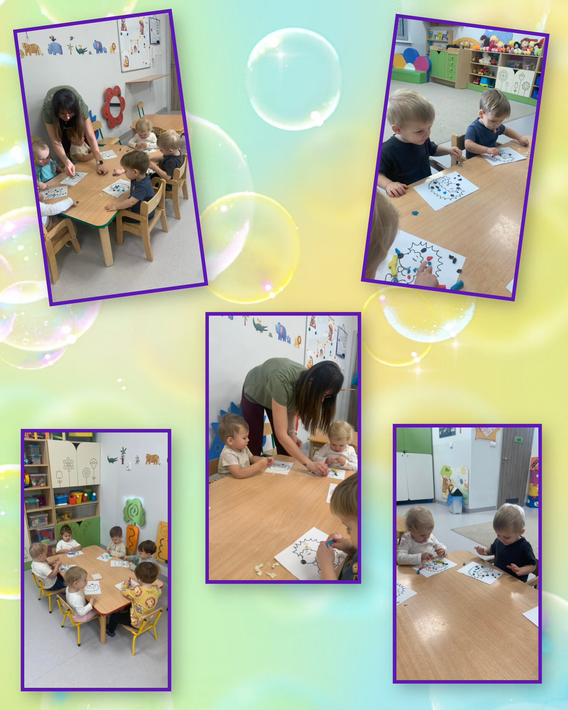 Z okazji Międzynarodowego Dnia Kropki dzieci uczestniczyły w radosnej, kreatywnej zabawie. Przygotowany został kolorowy kropkowy tor, który zachęcał maluchy do ruchu i eksploracji – dzieci z pomocą opiekunek przechodziły z kropki na kropkę, omijały kolorowe punkty i uczyły się przez zabawę.
