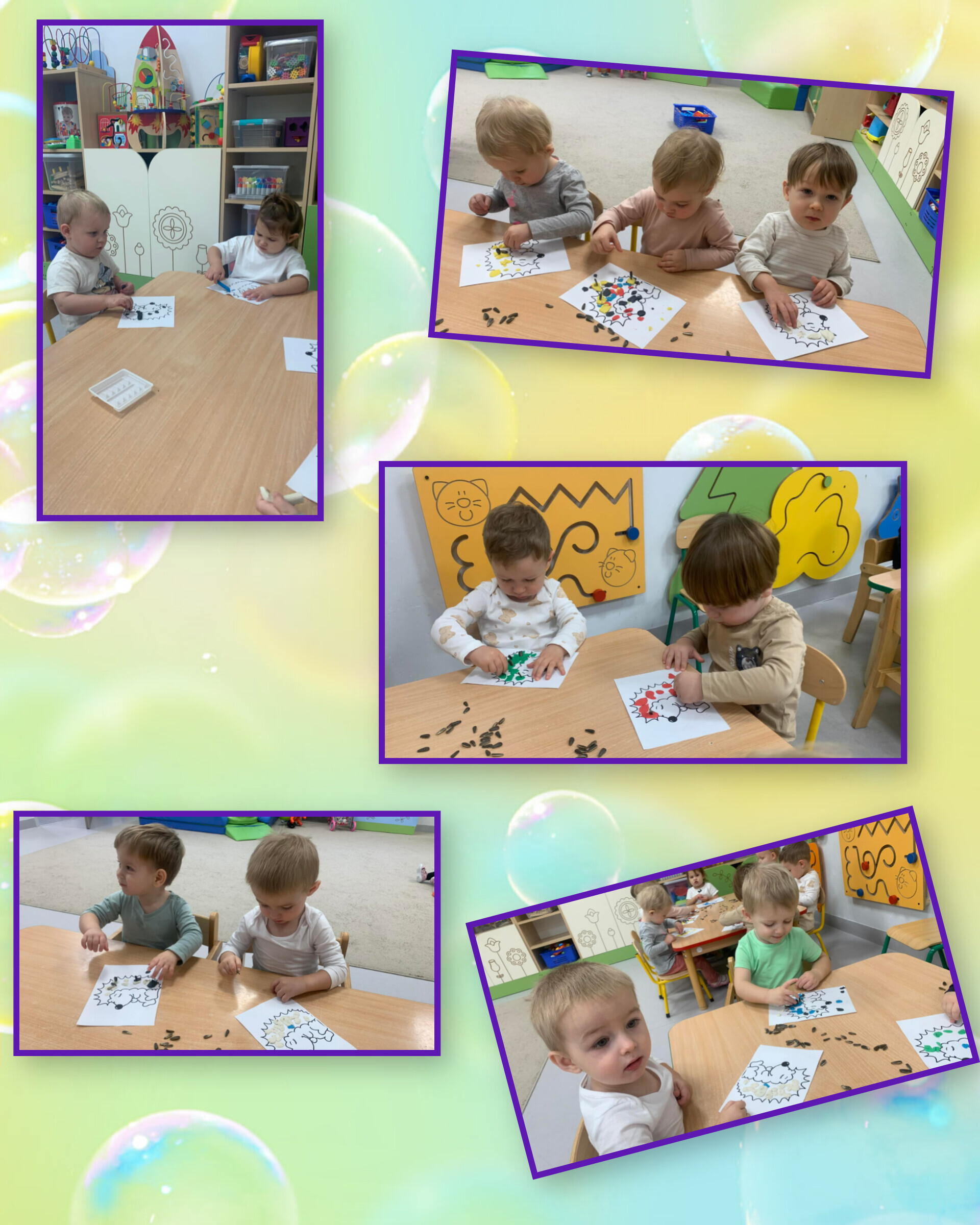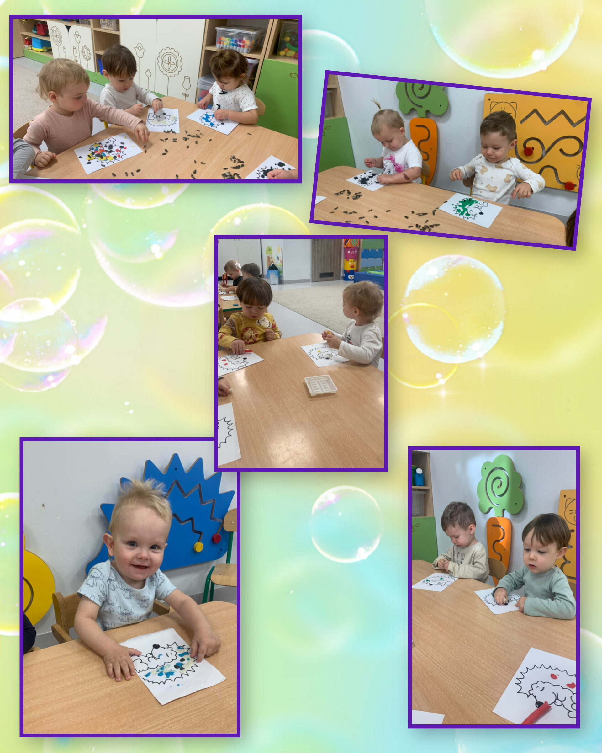 W Jeżynkach natomiast jeże dostały igiełki z ziaren słonecznika.To dopiero precyzyjna robota! Maluchy układały ziarenka tak cierpliwie, jakby robiły jeżowi elegancką kolczastą fryzurę na wielkie wyjście.