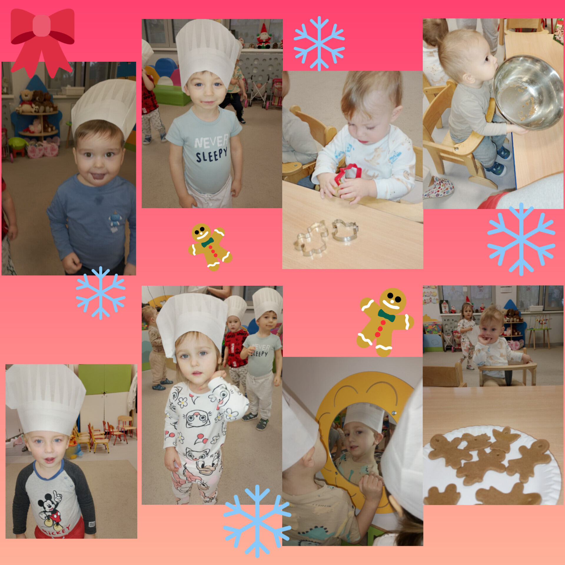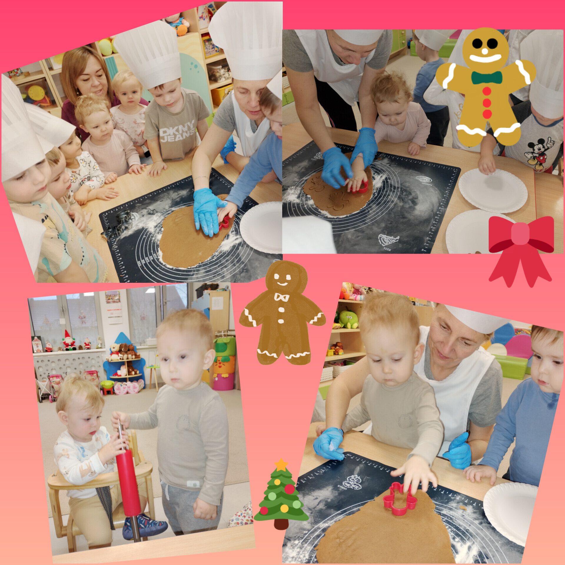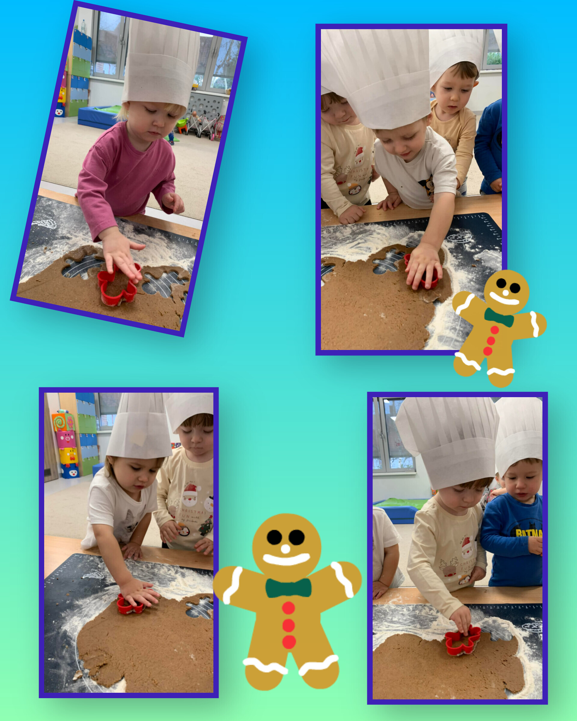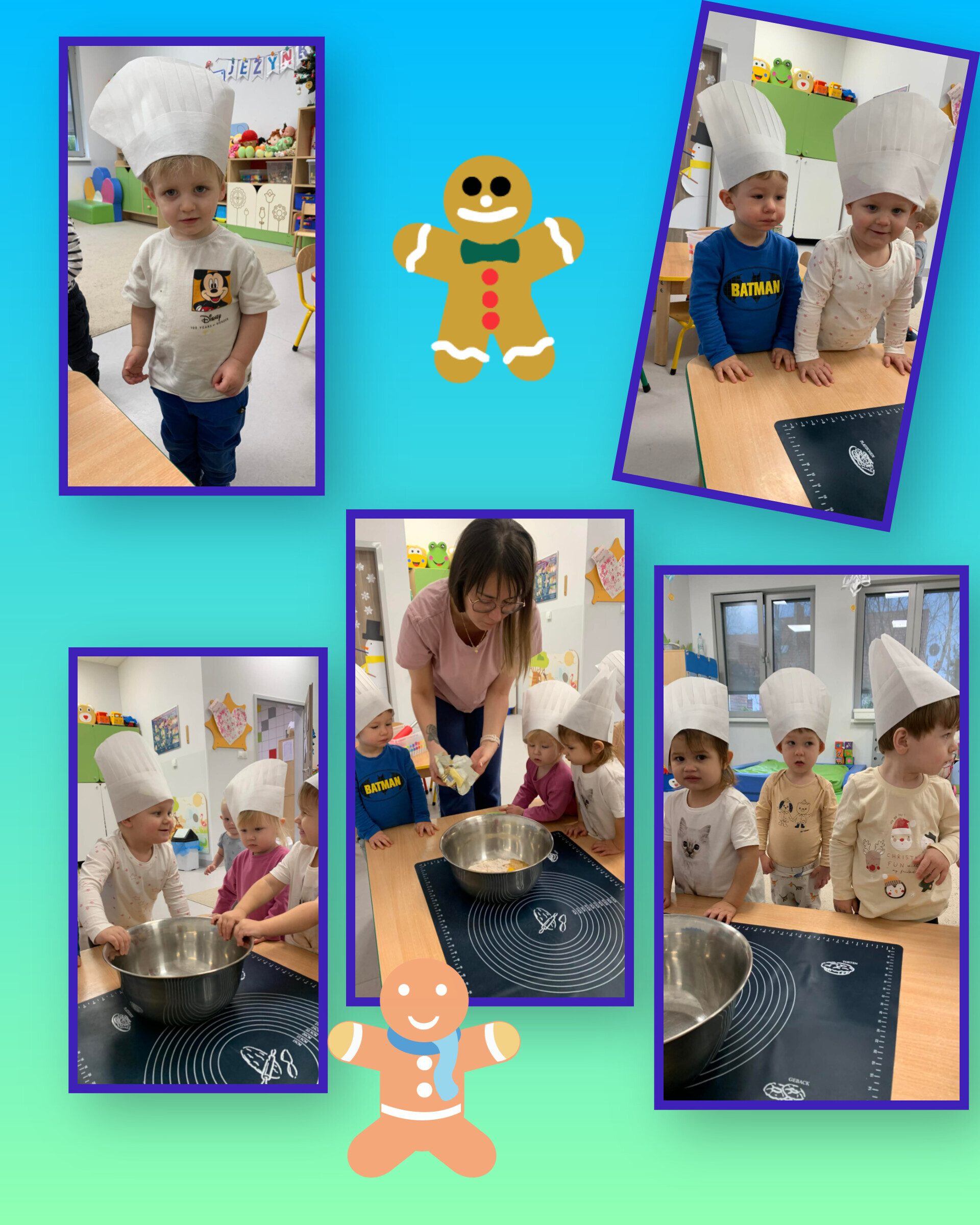 Następnie, jak prawdziwi cukiernicy, przystąpiliśmy do wałkowania przygotowanego przez nasze Panie ciasta na pierniki. Wykrawaliśmy różnorodne świąteczne kształty pierniczków. Podczas gdy my smacznie spaliśmy – nasze pierniczki zostały upieczone. Niesamowity aromat jeszcze długo unosił się w całym żłobku…