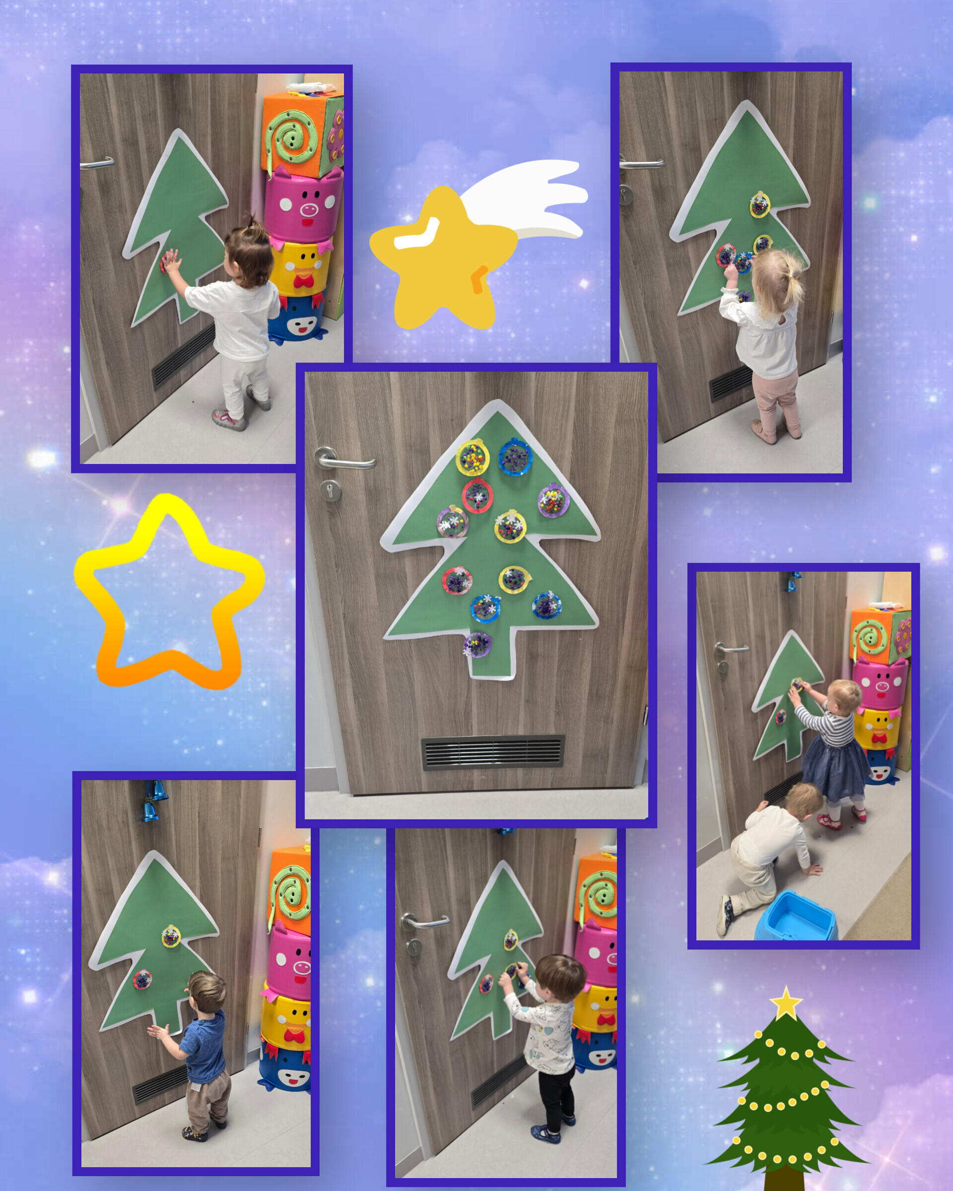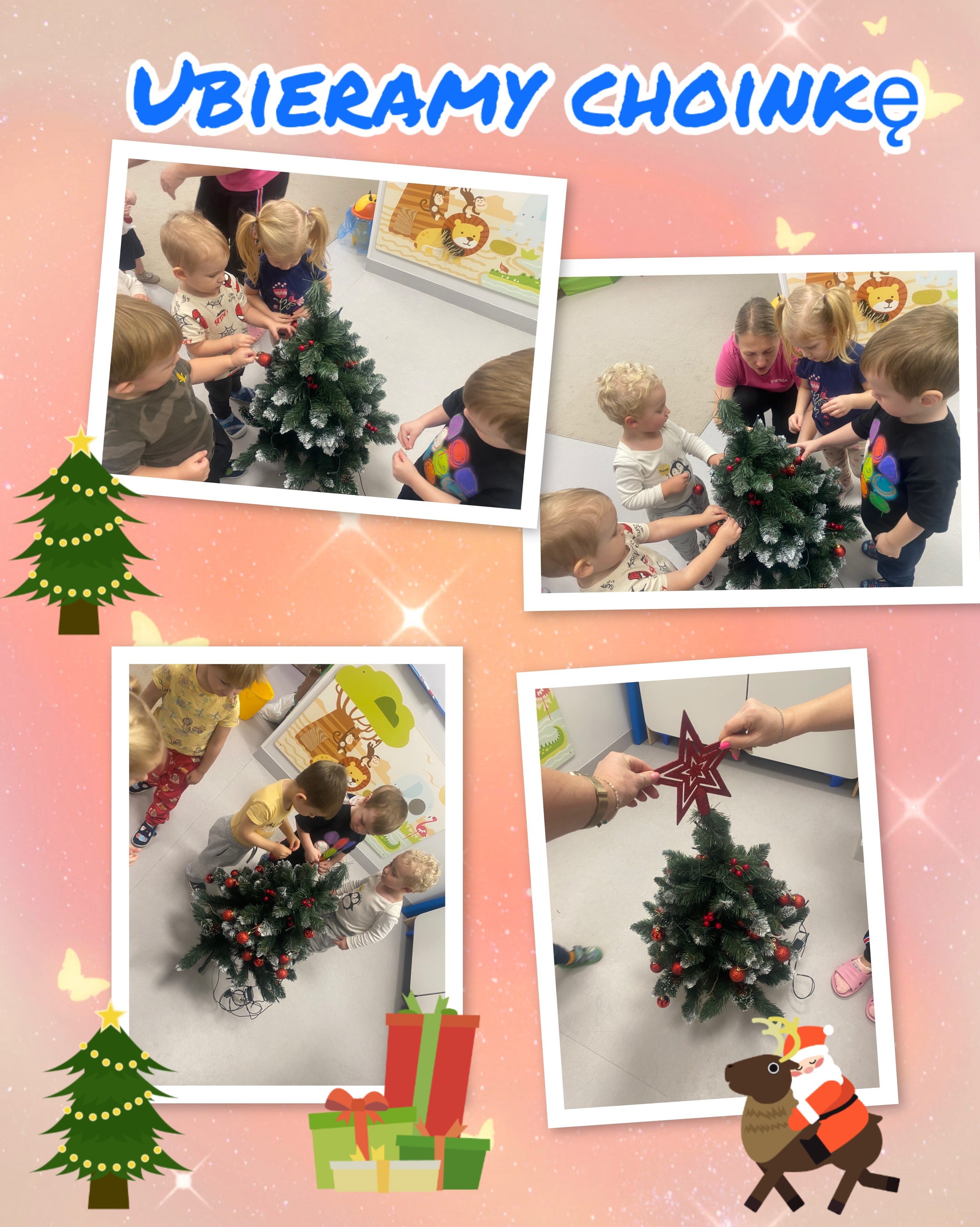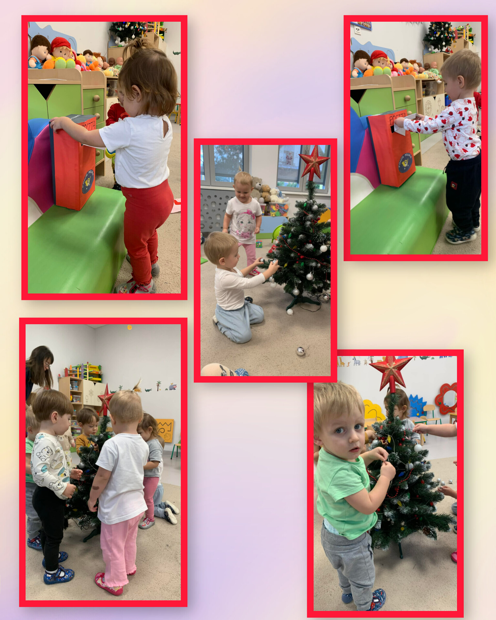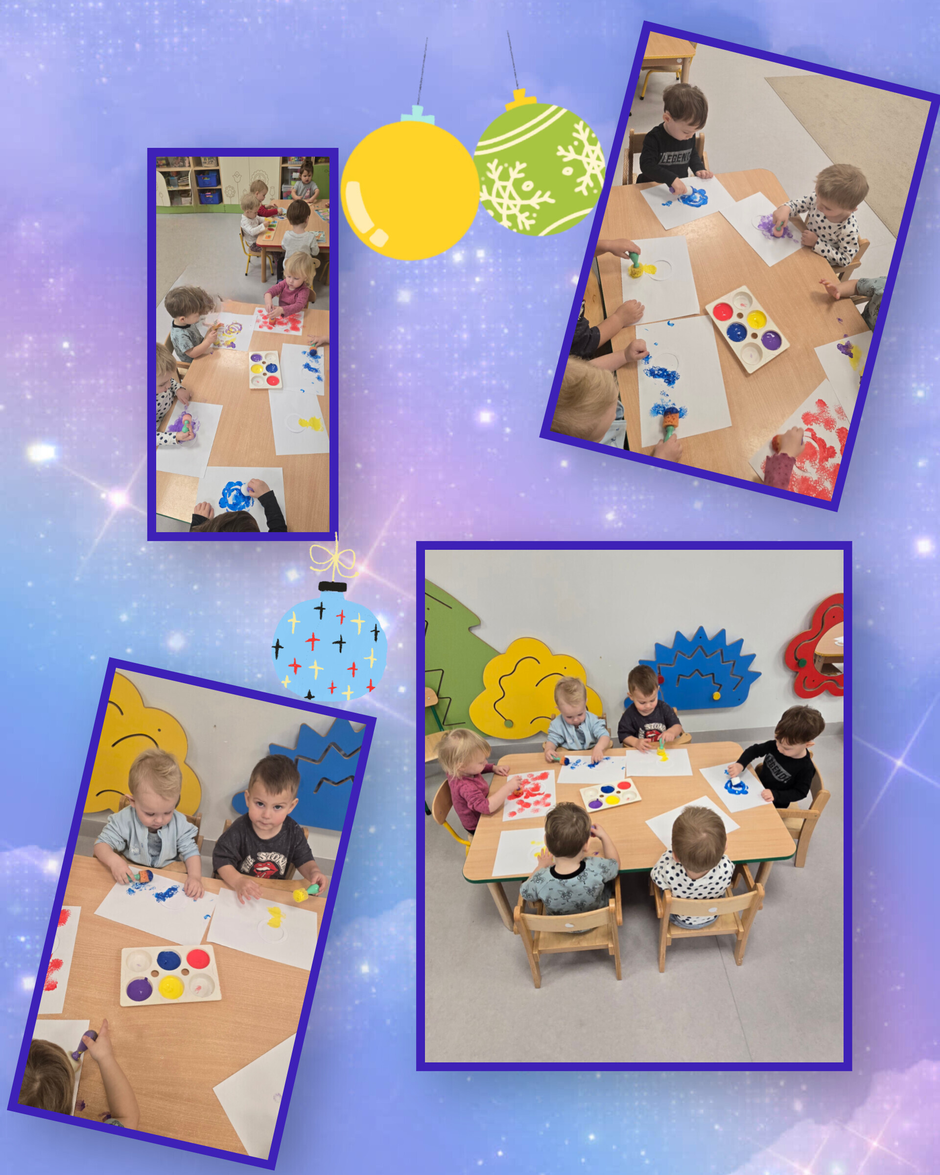 Grudzień to czas, kiedy wszyscy czekamy na Święta Bożego Narodzenia. Razem z naszymi Paniami robiliśmy ozdoby na choinkę. Nasze małe rączki bardzo się napracowały – wycinały, kleiły i posypywały wszystko brokatem. Było dużo śmiechu, trochę kleju na palcach i mnóstwo radości. Każda ozdoba była wyjątkowa, bo zrobiona przez nas i prosto z dziecięcego serduszka.