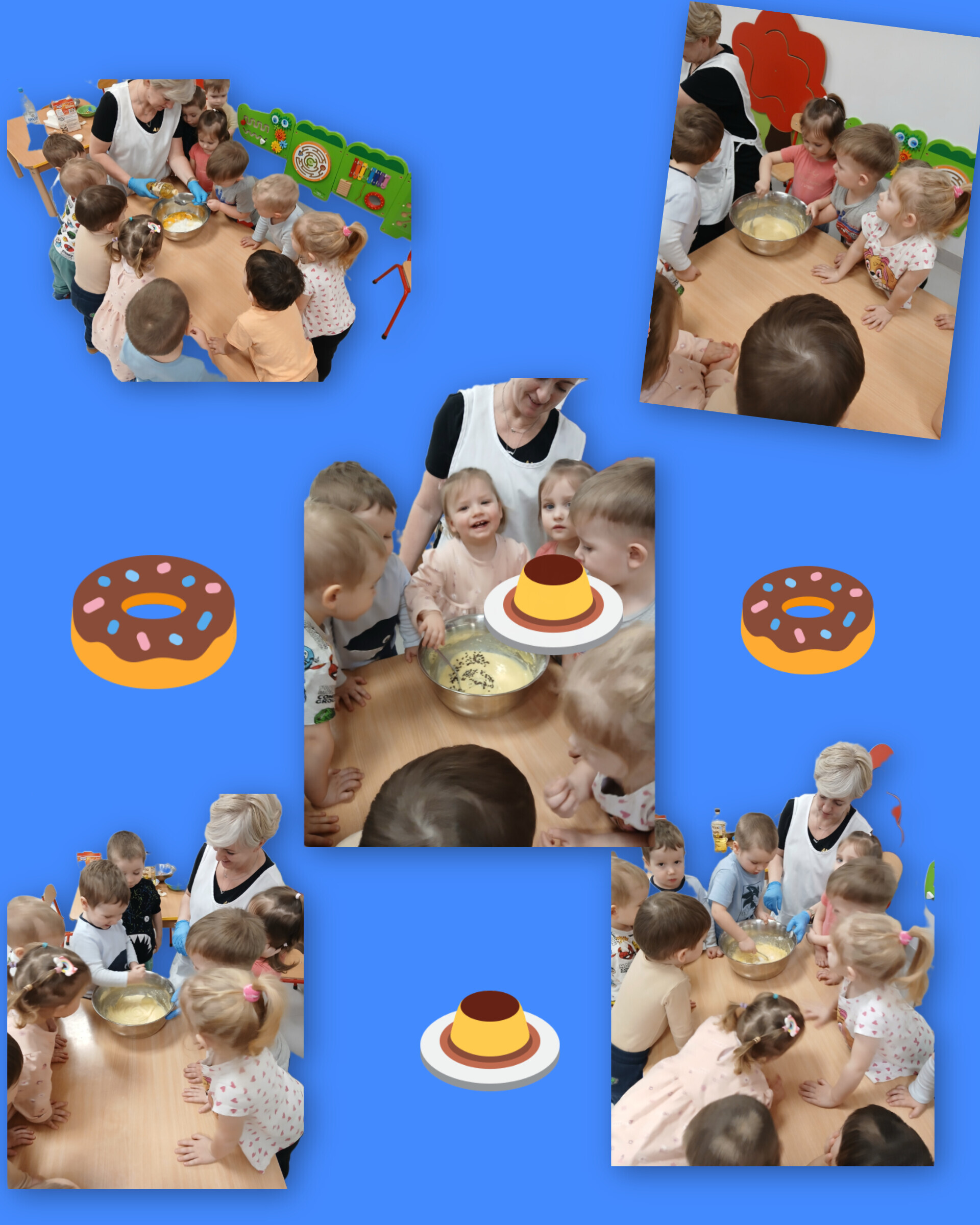 Kiedy zmęczeni, ale bardzo dumni, poszliśmy odpoczywać, nasze Panie włożyły babeczki do piekarnika. A gdy się obudziliśmy – czekała na nas słodka niespodzianka! Pachniało jak w najlepszej cukierni, a nasze wypieki wyglądały jeszcze piękniej niż te z wystawy.