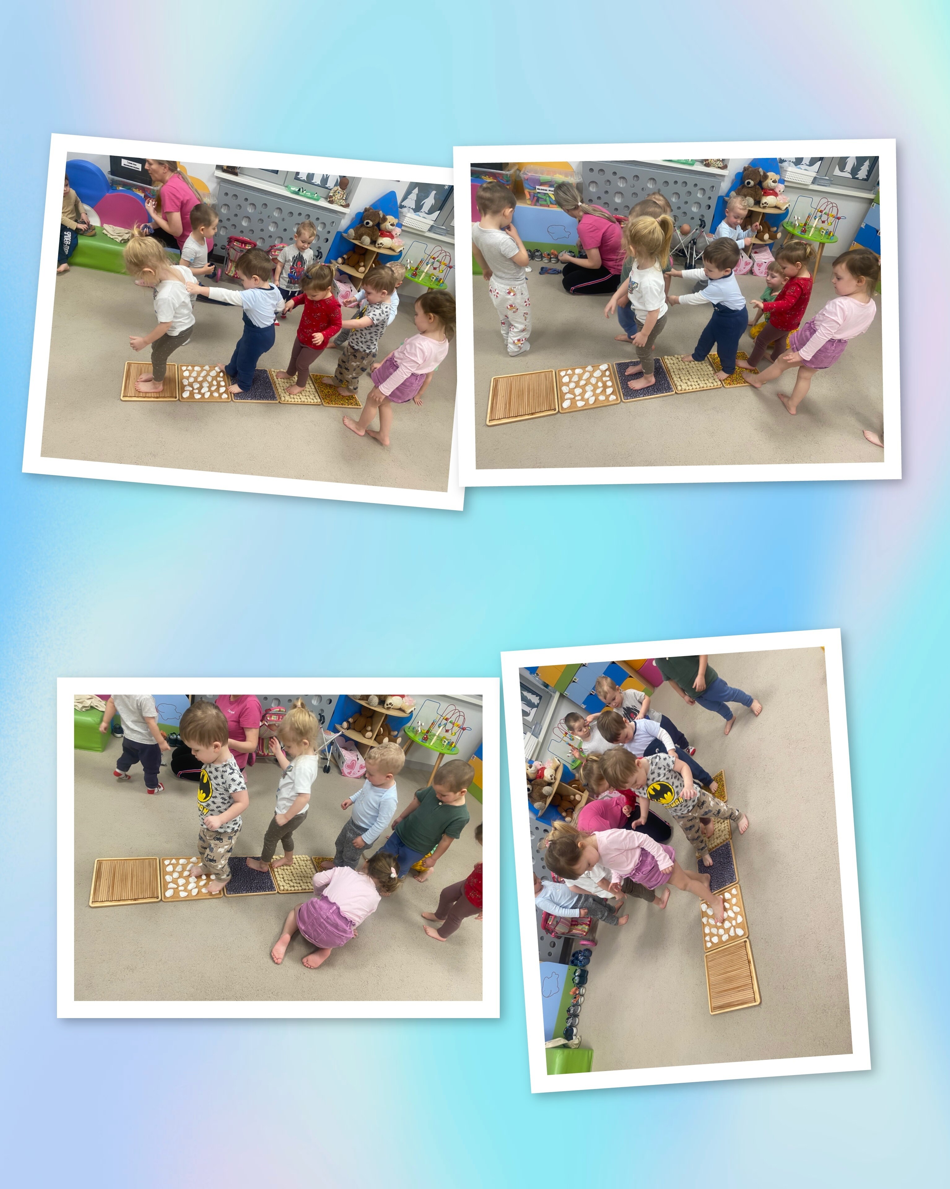 Zajęcia na ścieżce sensorycznej były nie tylko świetną zabawą, ale także ważnym elementem wspierającym rozwój integracji sensorycznej u najmłodszych. To była prawdziwa uczta dla małych stópek!