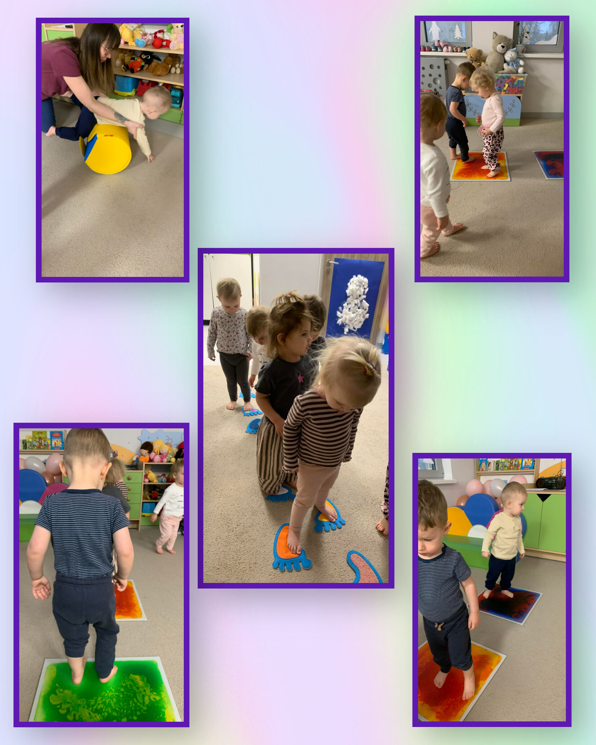 Zajęcia te pozwoliły dzieciom poznawać świat za pomocą dotyku – jednego z najważniejszych zmysłów w ich rozwoju. Różnorodność powierzchni zachęcała do eksplorowania i poruszania się w bezpieczny, kontrolowany sposób. Przy okazji wspieraliśmy także równowagę, koordynację ruchową i świadomość ciała.