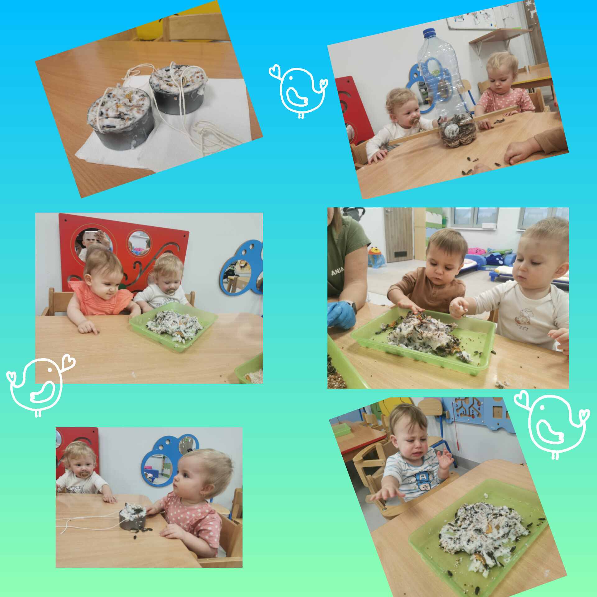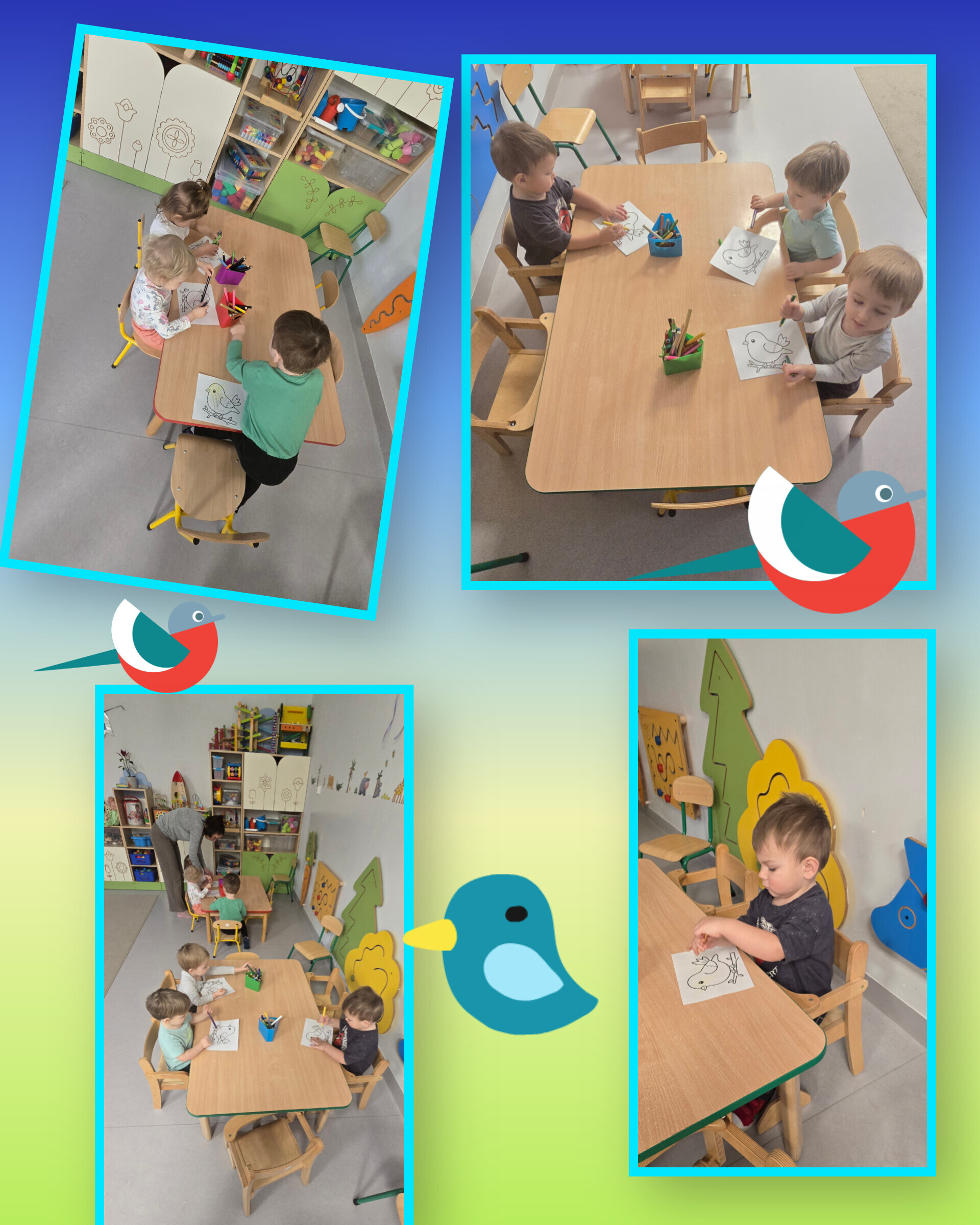 Podczas zajęć w ubiegłym tygodniu towarzyszyły nam różne gatunki ptaków – te, które dzielnie zostają z nami na zimę i liczą na naszą pomoc. Dowiedzieliśmy się, że w ptasiej stołówce najlepiej smakują okruszki, ziarenka i słoninka (bez przypraw, oczywiście!). Ptaki zaglądają, napełniają swoje brzuszki i lecą dalej, a my czujemy się jak prawdziwi szefowie restauracji „Pod Chmurką”.