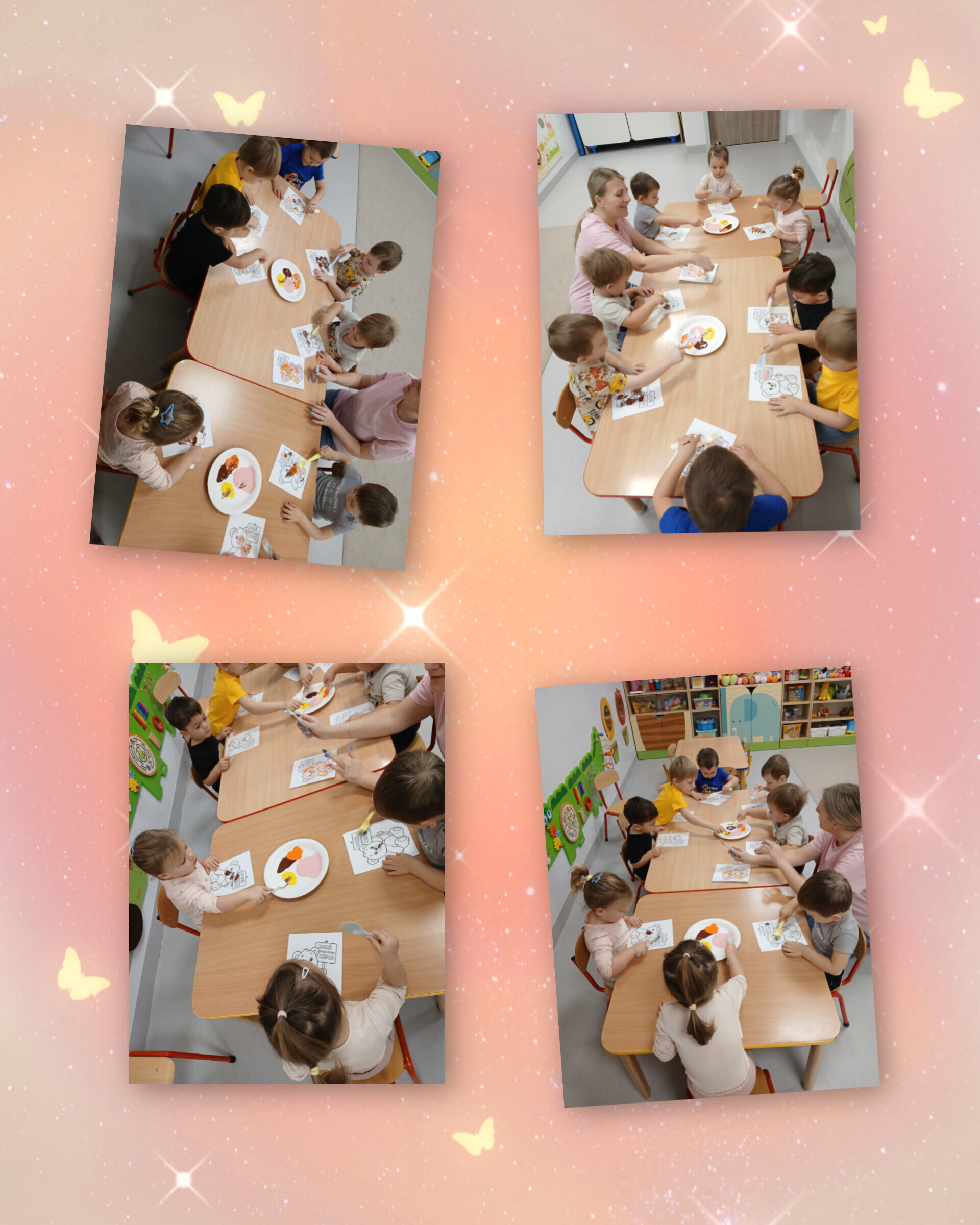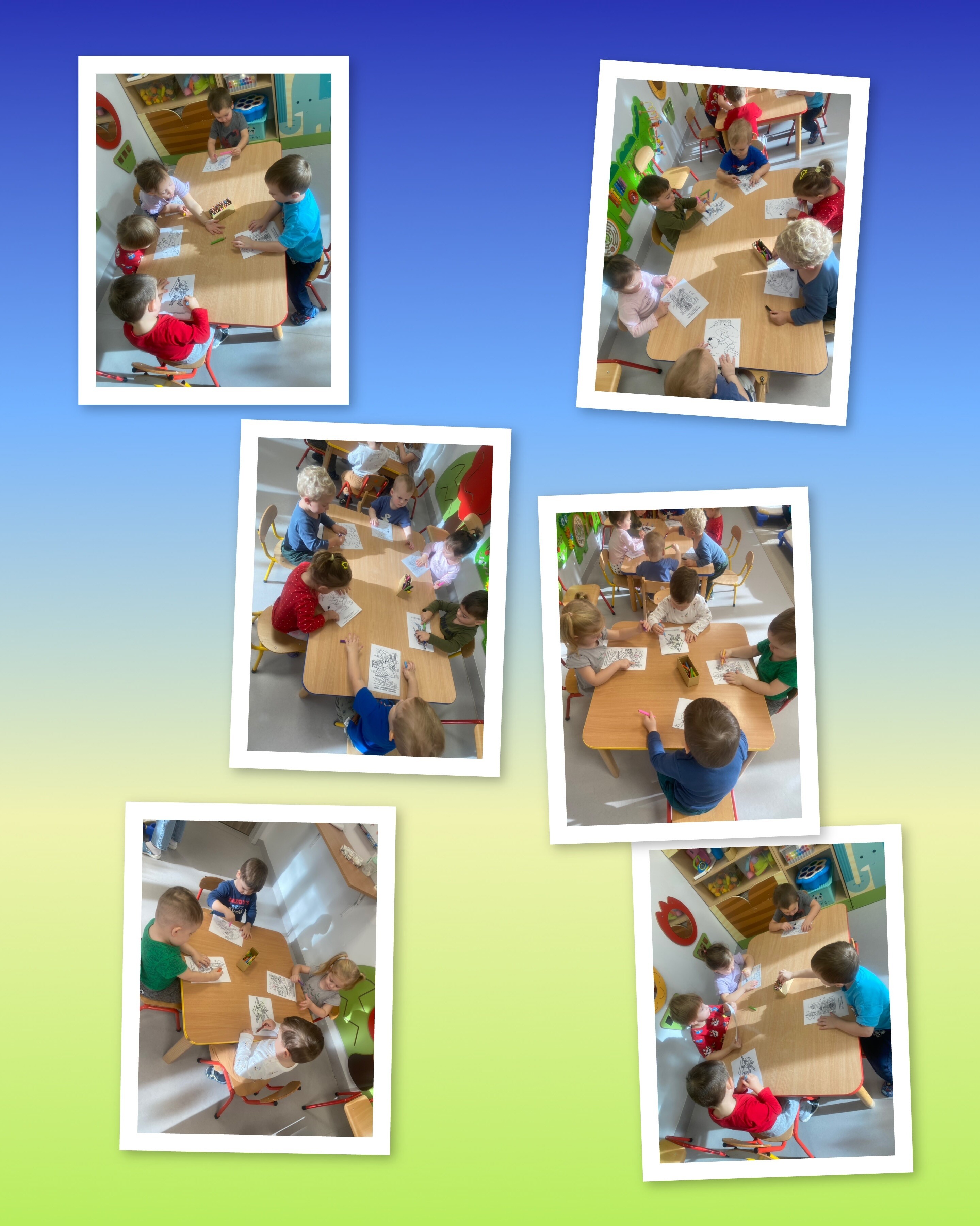 Jedną z głównych atrakcji tego dnia było kolorowanie sylwety chłopca. Dzieci z zaangażowaniem i dużą radością wybierały kolory, ozdabiały obrazki naklejkami i tworzyły własne wersje małych bohaterów. Było to nie tylko kreatywne zajęcie plastyczne, ale też doskonała okazja do rozmowy o tym, kim jest chłopak i co lubi robić.