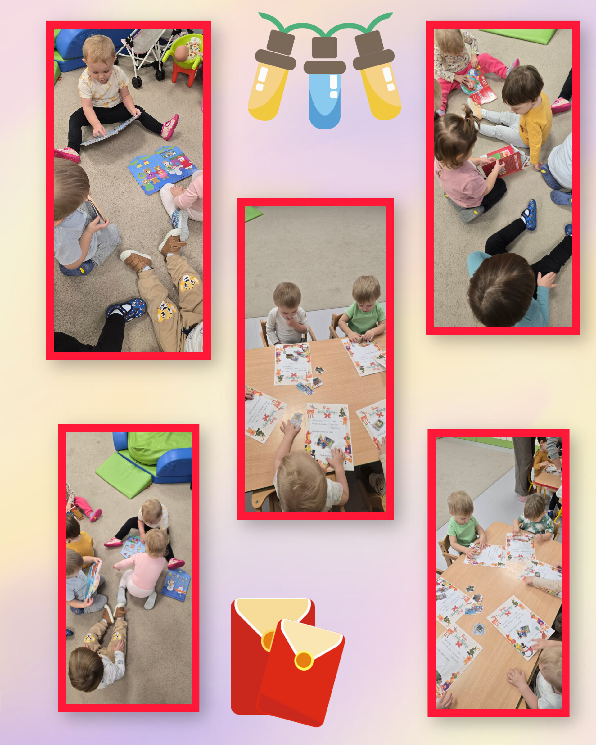 Każde z dzieci przygotowało własną kartkę, która trafiła do specjalnej skrzynki pocztowej, stworzonej przez panie opiekunki. Zanim jednak to nastąpiło, każdy mały listonosz odcisnął pieczątkę na swojej kartce za pomocą stempelków i tuszu – było przy tym mnóstwo śmiechu!