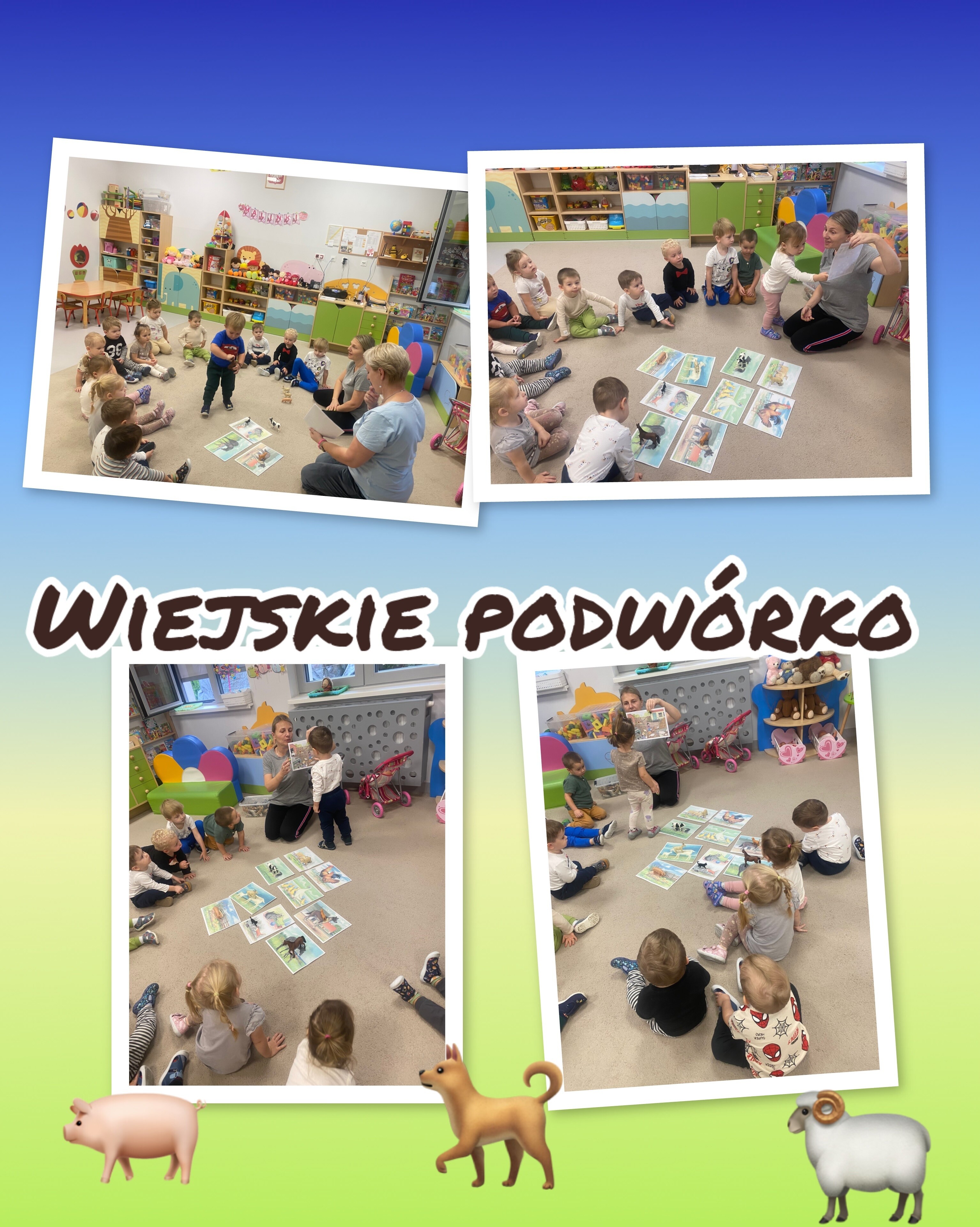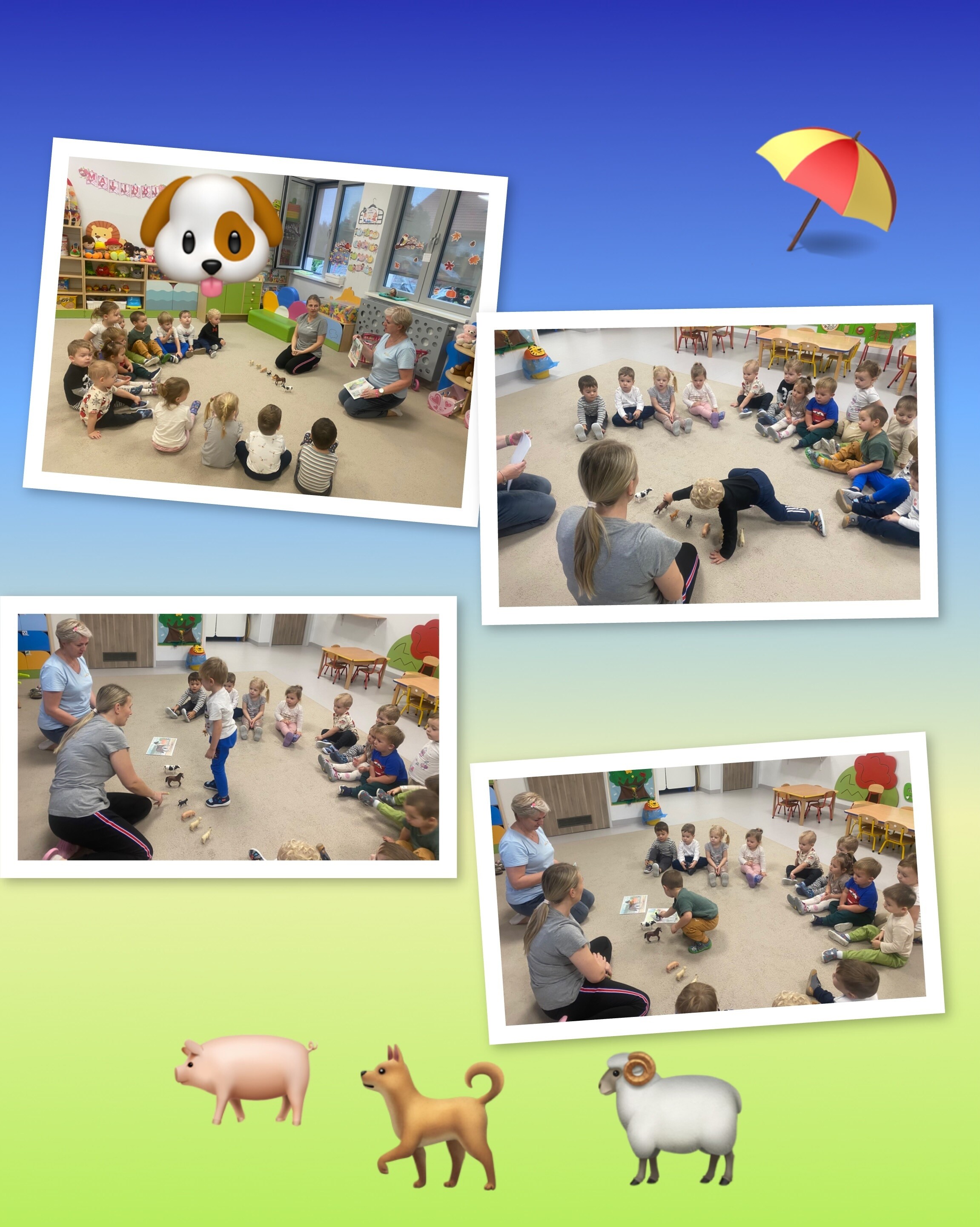 Patrzymy, jak wyglądają, słuchamy ich odgłosów, a potem… zaczyna się prawdziwa zabawa! Zamieniamy się w kury, kaczki, krowy i koniki: gdaczemy, muczymy, kwaczemy i parskamy tak głośno, że całe „nasze gospodarstwo” aż ożywa.