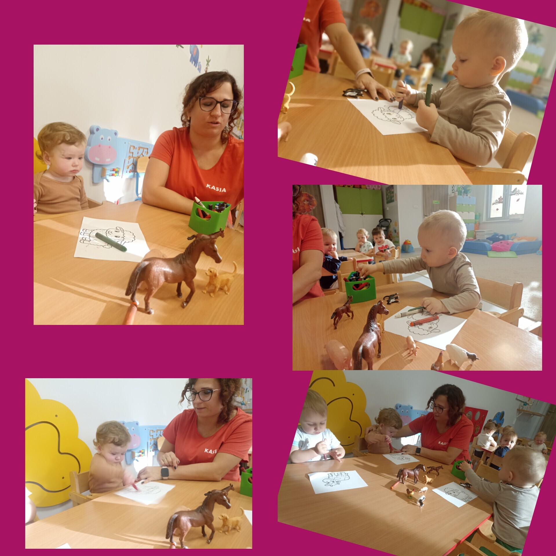 A gdy już się wyhasamy, sięgamy po kredki i zaczyna się artystyczne szaleństwo. „Ubieramy” zwierzątka w kolorowe futerka i piórka — czasem nawet takie, jakich nie ma w naturze! Fioletowa krowa? Tęczowy kogut? Proszę bardzo!