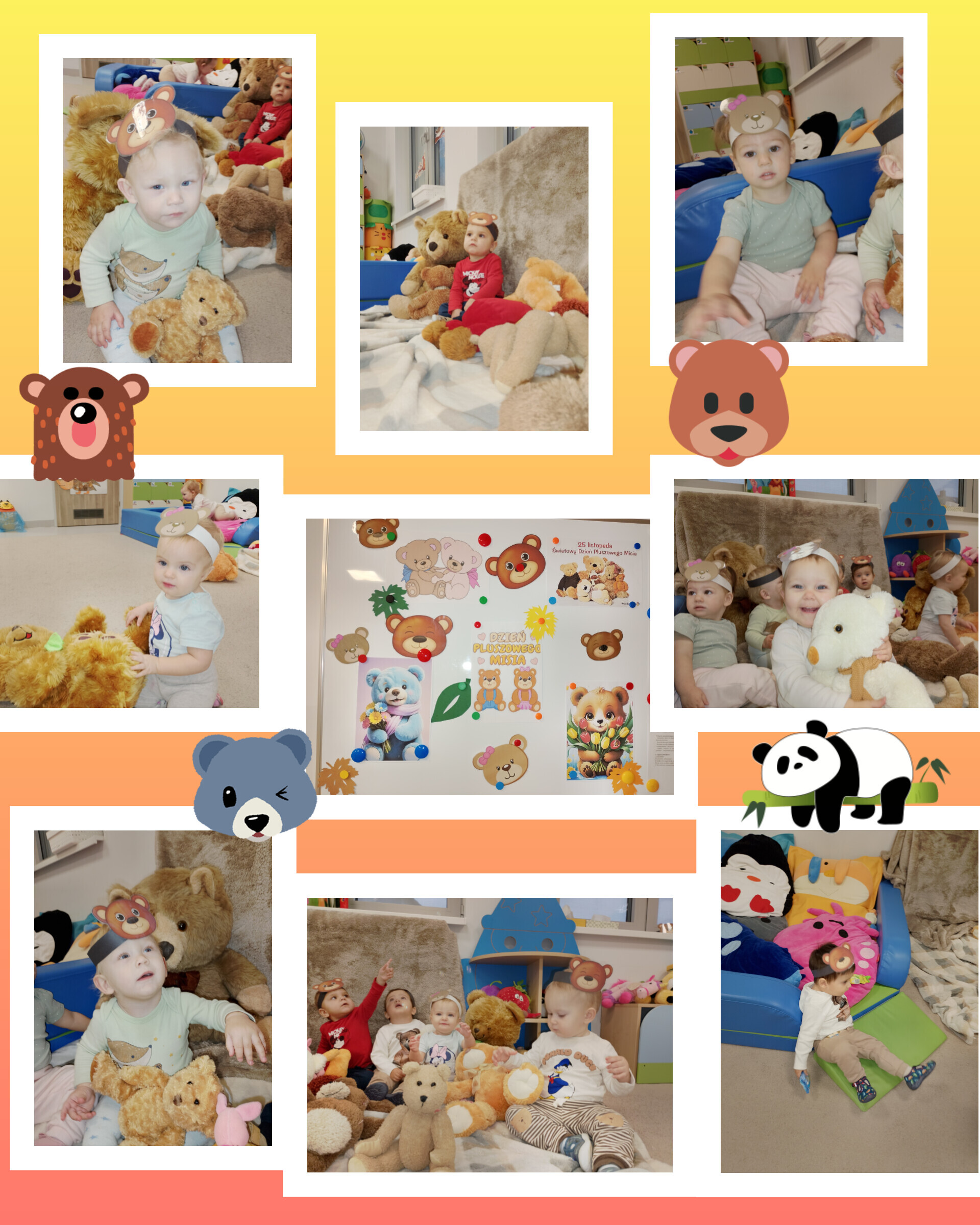 W Dniu Pluszowego Misia mogliśmy spędzać czas w towarzystwie naszych ukochanych, puchatych przyjaciół. Już od rana zamienialiśmy się w małe i radosne misie - misie śmiały się, turlały po kocyku i mruczały z zachwytu. Próbowaliśmy też miodku — niektórzy tak bardzo polubili ten smak, że wyglądali, jakby za chwilę mieli wpaść w zimowy sen!